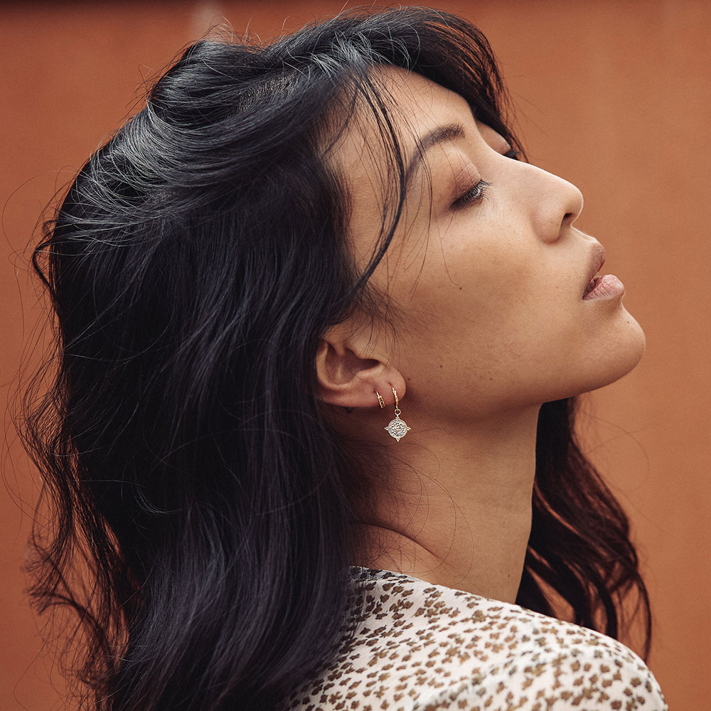 The Jodie Sleepers feature small charm. Perfect to wear on their own or layer with sleepers to elevate the look.